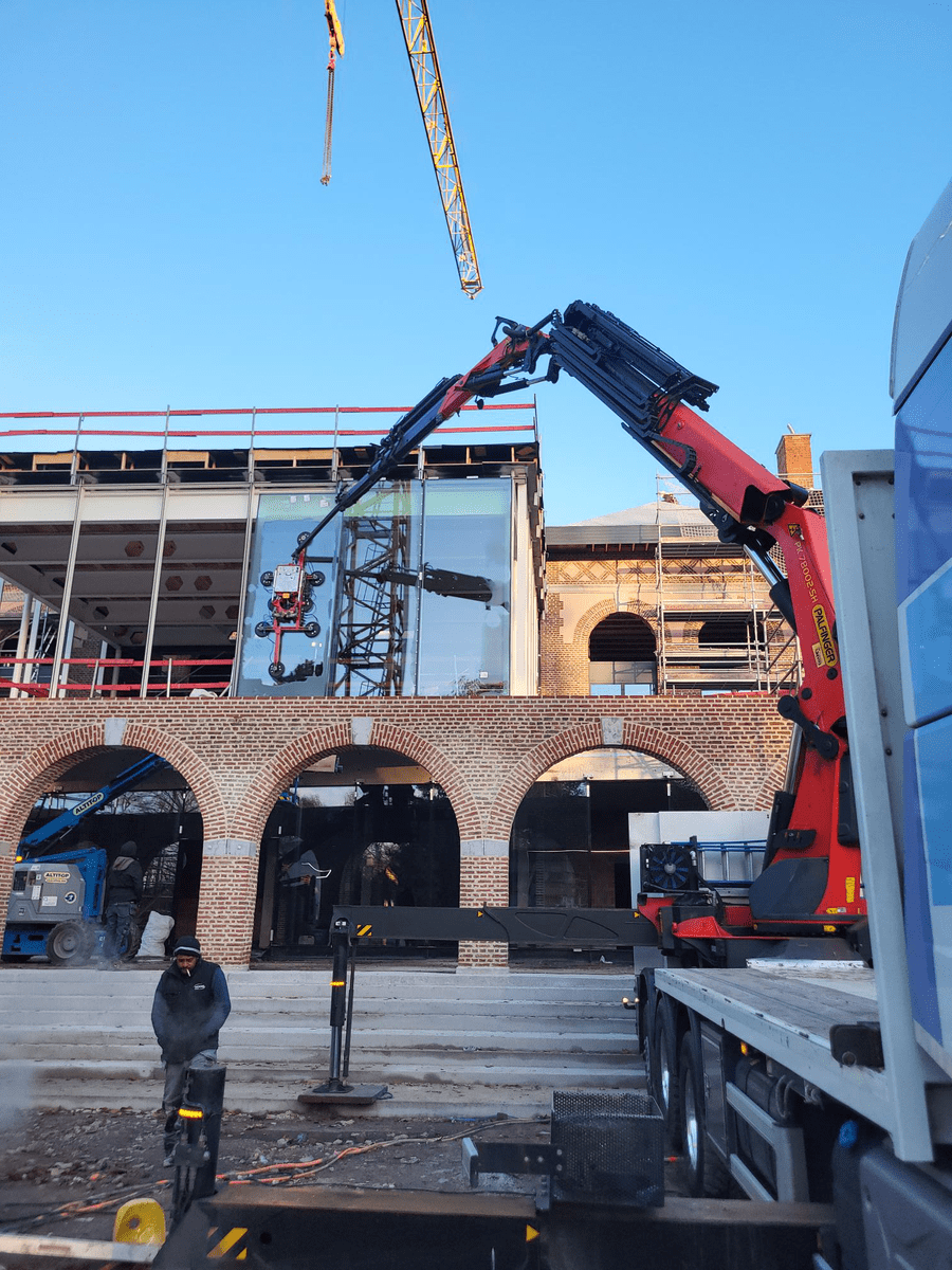 Phase 3 : mise en place des murs rideaux et des vitrages de 4,50m de haut (voir photo 3 et 4)