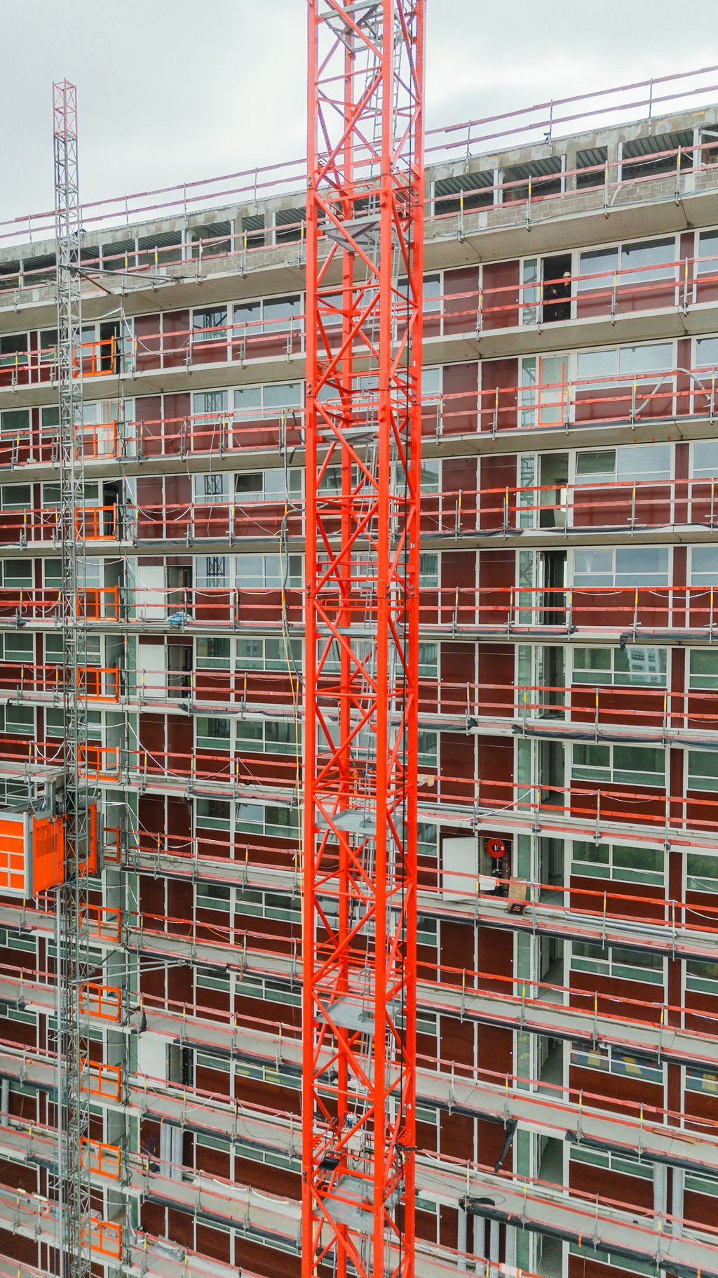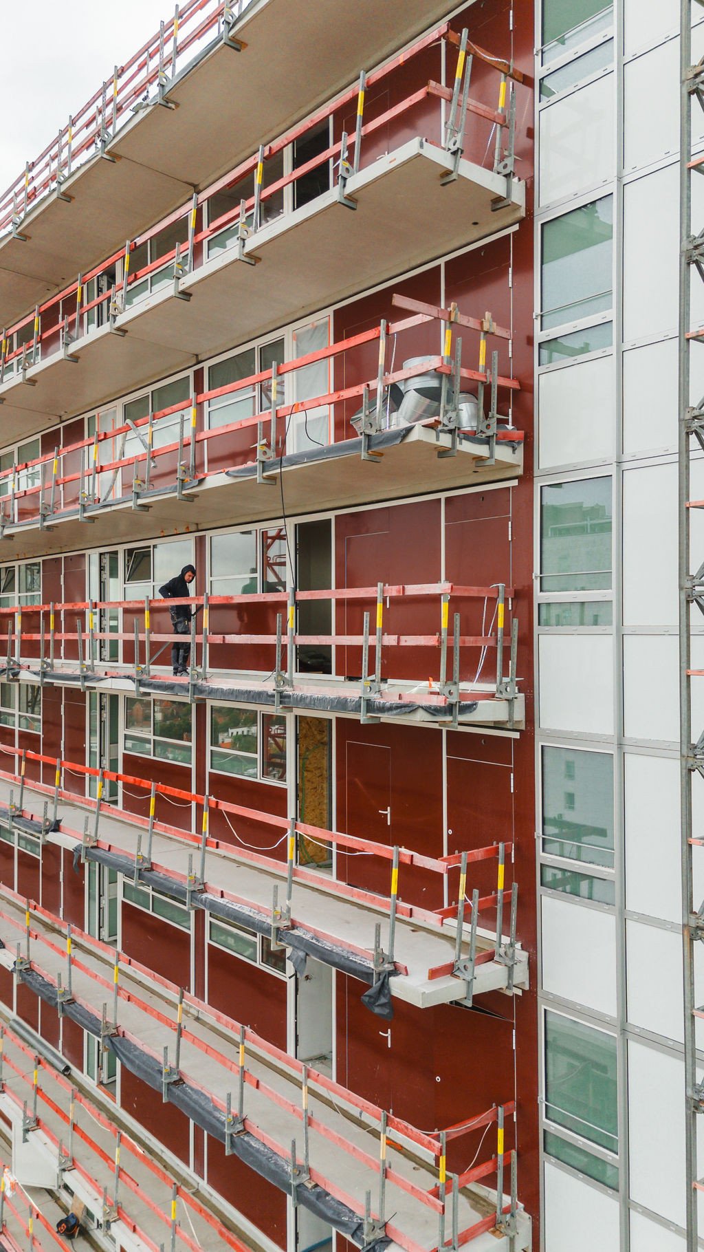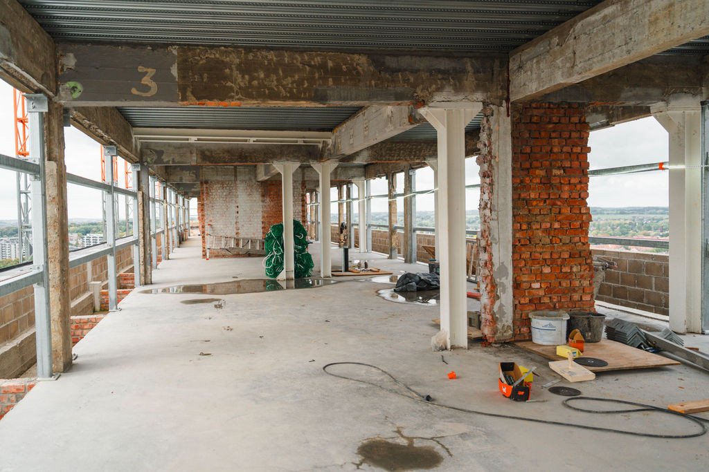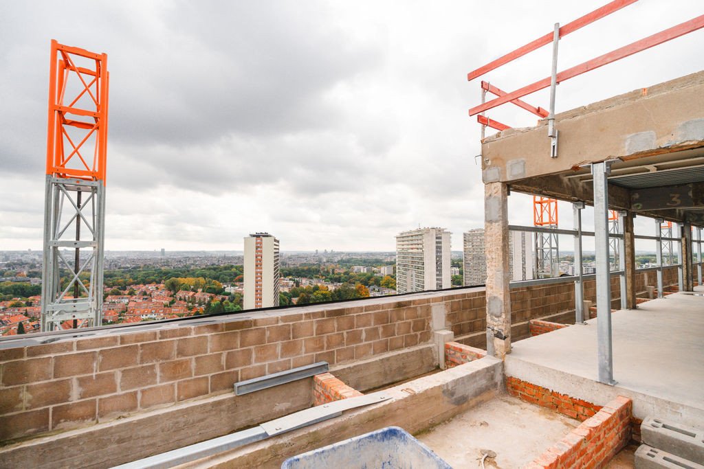 L’immeuble sera désamianté, complètement évidé et mis à nu (façades, toitures, aménagement intérieur et finition, installations techniques) et les coursives ainsi que l'escalier de secours extérieur seront remplacés par de nouveaux éléments en béton. L’enveloppe de l’immeuble sera pourvue d’une nouvelle menuiserie en aluminium (profils à 3 chambres, vitrage HR) ; placement d’isolation à haute performance derrière des panneaux de façade composites ; rénovation de la couverture de toiture avec isolation thermique supplémentaire.